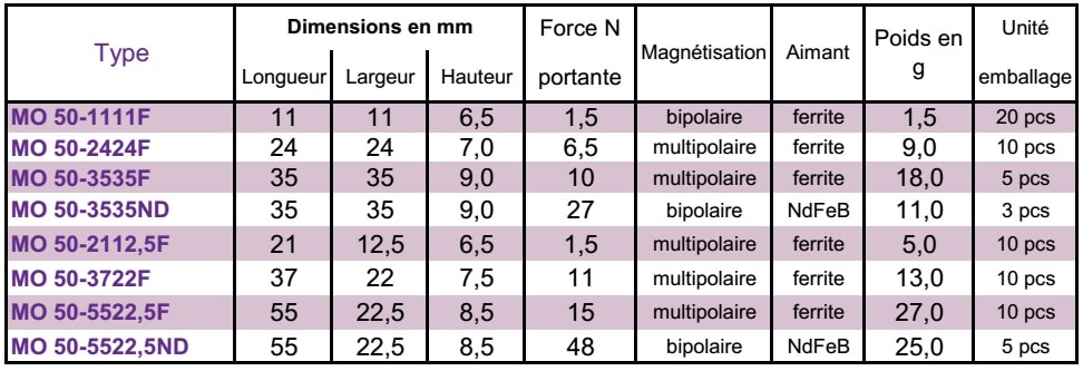 Pour finir, notre gamme de produits implique donc différents produits magnétiques aussi bien standard que spécifiques :